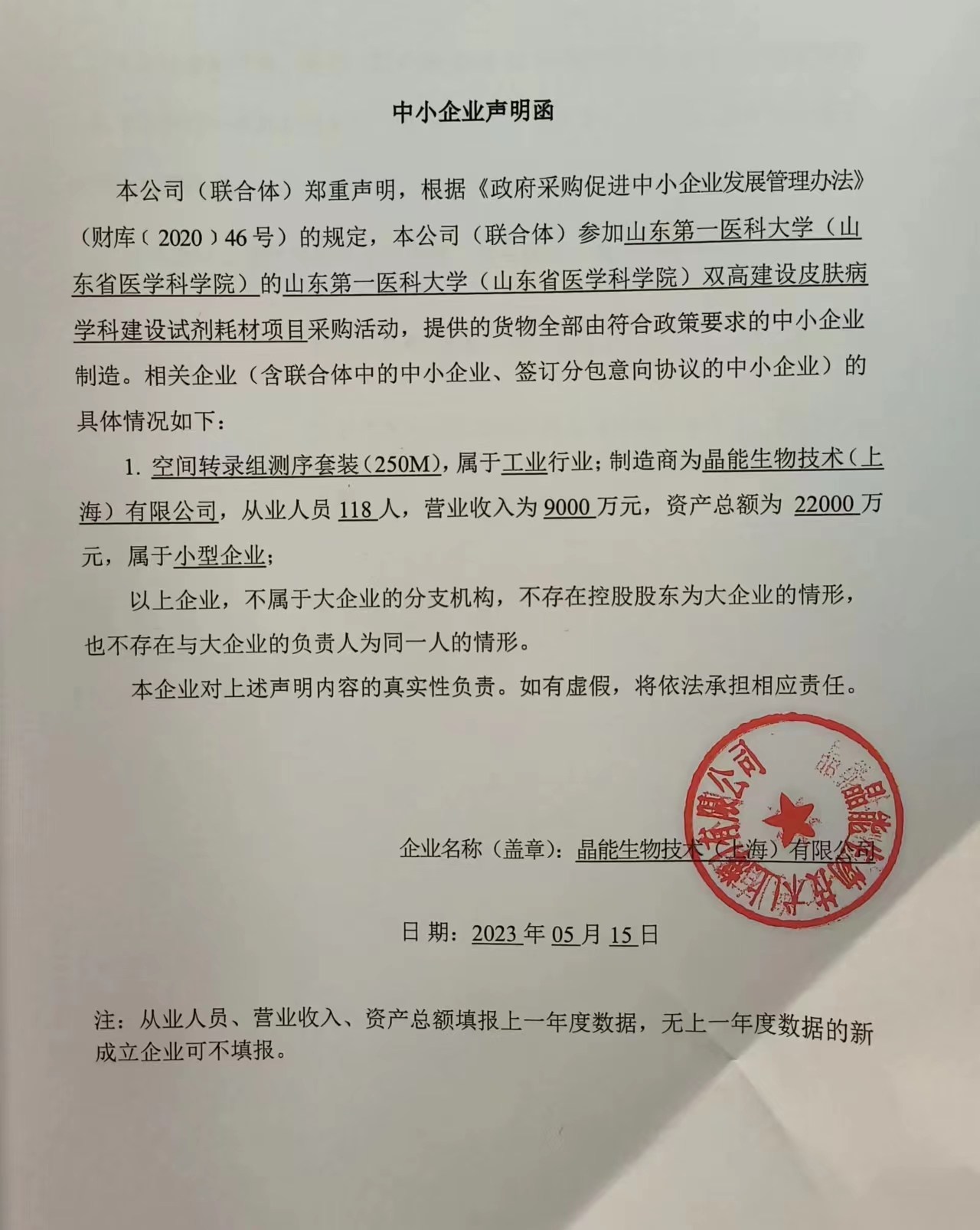 标包:A 供应商名称:晶能生物技术(上海)有限公司 供应商地址:上海市松江区九亭镇中心路1158号5幢501室 中标(成交)金额:(可填写下浮率、折扣率或费率):249.34万元 |
