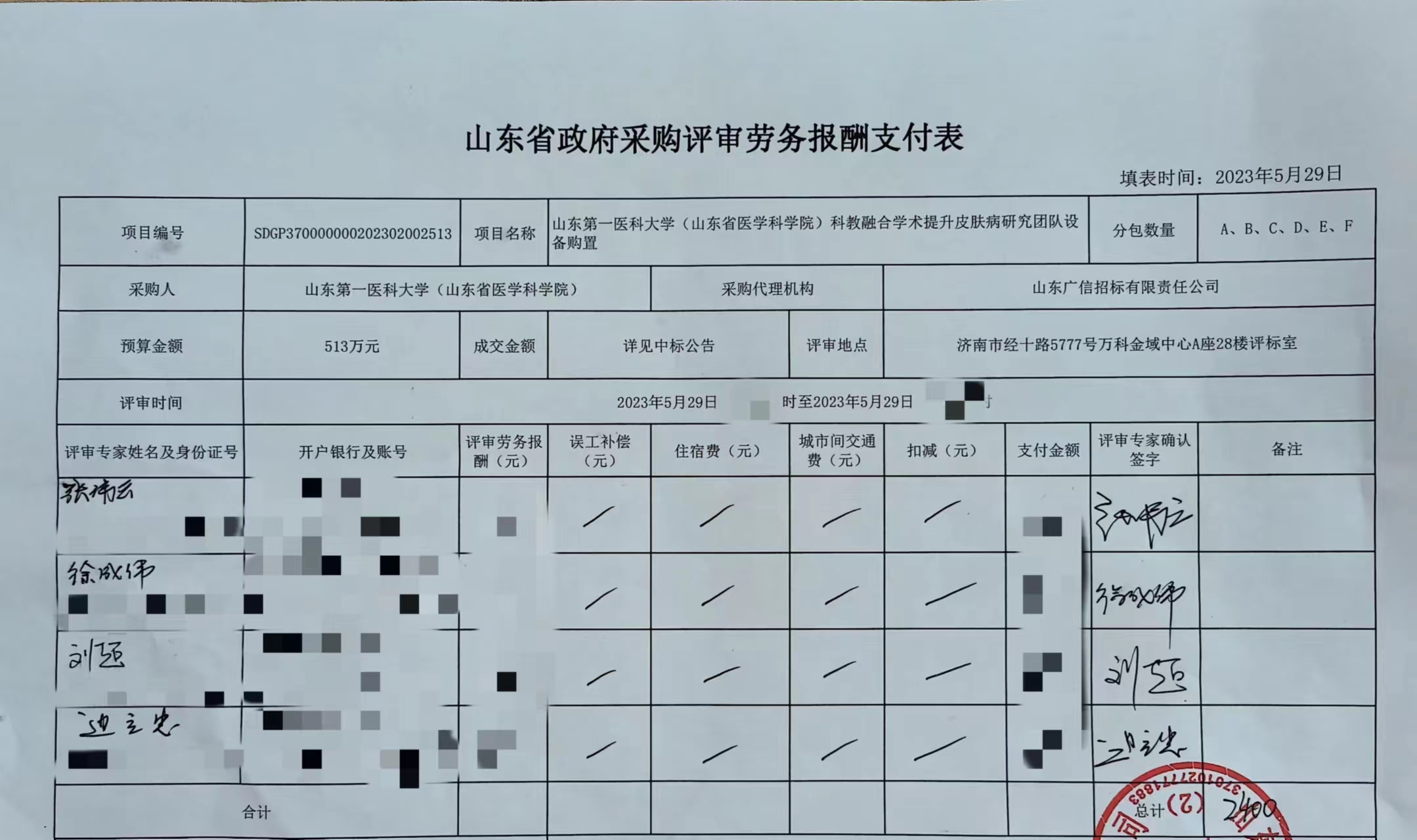标包:A 供应商名称:山东鲁商源科学仪器有限公司 供应商地址:中国(山东)自由贸易试验区济南片区工业南路丁豪广场6号楼一单元2606室 中标(成交)金额:(可填写下浮率、折扣率或费率):154.28万元 标包:B 供应商名称:山东奥恒生物科技有限公司 供应商地址:济南市历下区轻风路6号鲁商盛景广场A座1504 中标(成交)金额:(可填写下浮率、折扣率或费率):112.87万元 标包:C 供应商名称:山东克林医疗科技有限公司 供应商地址:山东省济南市市中区陡沟街道办事处丰齐村479号201室 中标(成交)金额:(可填写下浮率、折扣率或费率):113.46万元 标包:D 供应商名称:山东京科医疗器械有限公司 供应商地址:山东省济南市槐荫区畅和苑商业中心5号楼206 中标(成交)金额:(可填写下浮率、折扣率或费率):38.17万元 标包:E 供应商名称:山东艾诺康医疗科技有限公司 供应商地址:济南市槐荫区龙湖新壹街5号楼443室 中标(成交)金额:(可填写下浮率、折扣率或费率):37.9万元 标包:F 供应商名称:山东品创医教科技发展有限公司 供应商地址:山东省济南市历城区华山街道渔洋路286号2号楼1615室 中标(成交)金额:(可填写下浮率、折扣率或费率):54.88万元 |
